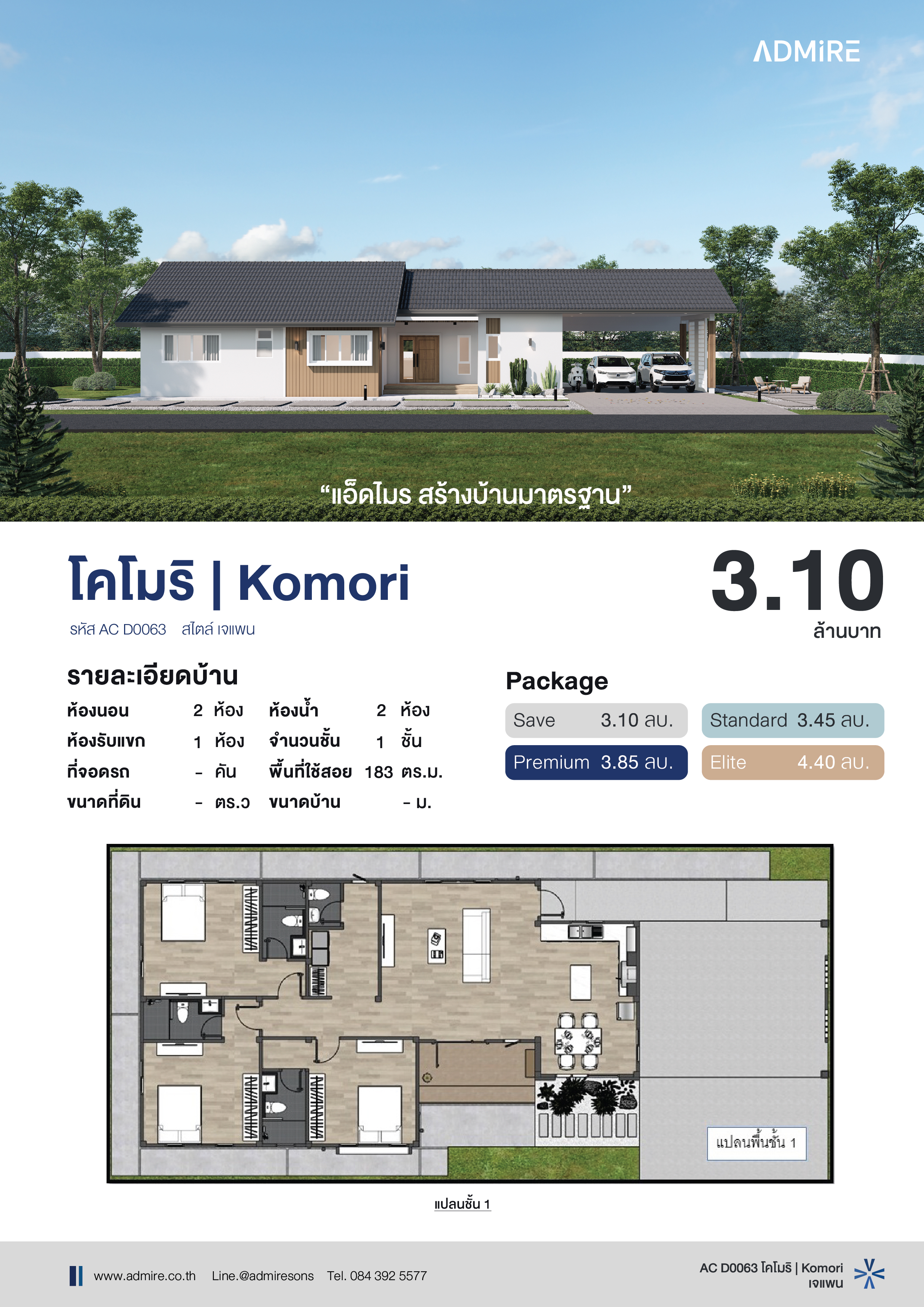 “โคโมริ” ได้แรงบันดาลใจจากความเรียบง่ายของ บ้านสไตล์มินิมอลญี่ปุ่น ที่ผสมผสานความอบอุ่นของโทนไม้กับความสะอาดของสีขาว พร้อมหลังคาทรงจั่วที่ดูมั่นคงและเรียบง่าย ทำให้บ้านเหมาะกับทั้งครอบครัวรุ่นใหม่และคนที่ต้องการบ้านชั้นเดียวเพื่อการใช้ชีวิตที่สะดวกสบาย