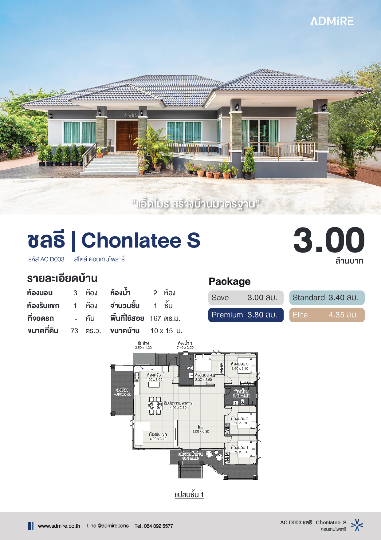 “Enclave” ถูกออกแบบให้เป็นบ้านชั้นเดียวสไตล์ Classic Modern ที่ผสานความสง่างามเหนือกาลเวลาเข้ากับความเรียบง่ายและการใช้งานจริง ตัวบ้านให้ความรู้สึกมั่นคง น่าเชื่อถือ และสะท้อนรสนิยมที่หรูหราอย่างพอดี เหมาะกับครอบครัวที่ต้องการ ความอบอุ่น, ฟังก์ชันครบ, และพื้นที่ใช้สอยที่ลงตัว