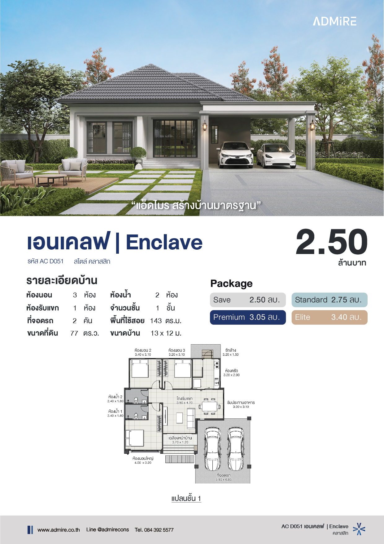 “Enclave” ถูกออกแบบให้เป็นบ้านชั้นเดียวสไตล์ Classic Modern ที่ผสานความสง่างามเหนือกาลเวลาเข้ากับความเรียบง่ายและการใช้งานจริง ตัวบ้านให้ความรู้สึกมั่นคง น่าเชื่อถือ และสะท้อนรสนิยมที่หรูหราอย่างพอดี เหมาะกับครอบครัวที่ต้องการ ความอบอุ่น, ฟังก์ชันครบ, และพื้นที่ใช้สอยที่ลงตัว