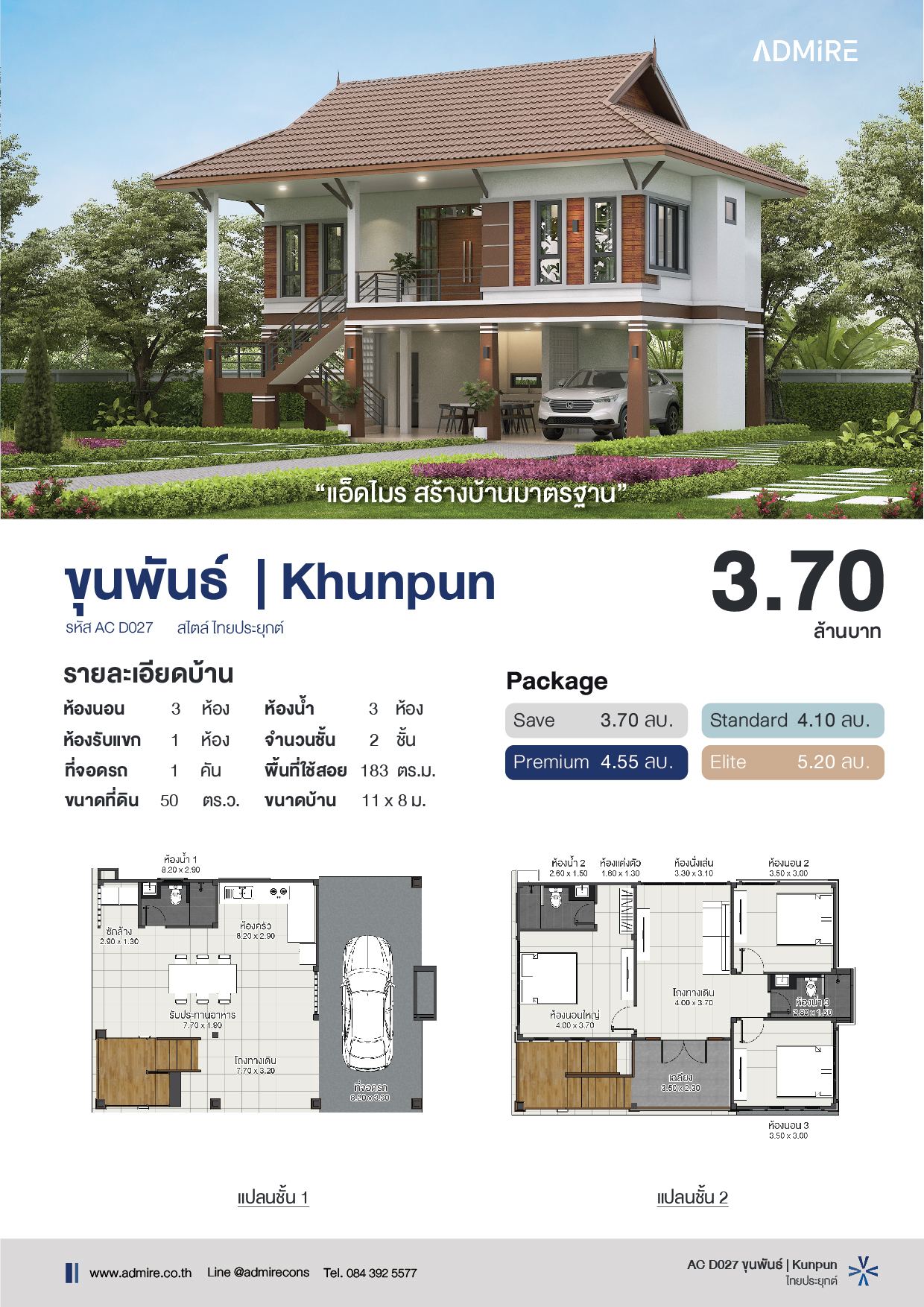 บ้านไทยประยุกต์สไตล์ร่วมสมัย ถูกออกแบบให้สวยงามและเหมาะกับสภาพอากาศเมืองไทย โดดเด่นด้วยการยกใต้ถุนสูง ดีไซน์หลังคาทรงมะนิลาสีน้ำตาล ตัดกับผนังภายนอกผสมผสานสีขาว ทำให้บ้านดูอบอุ่นและกลมกลืนกับธรรมชาติ หน้าต่างกระจกบานใหญ่ช่วยดึงแสงธรรมชาติเข้าภายใน ทำให้บรรยากาศโปร่งสบาย เหมาะกับครอบครัวที่ต้องการบ้านที่ผสมผสานระหว่างความงดงามแบบไทยดั้งเดิมที่มาพร้อมกับฟังก์ชันทันสมัย