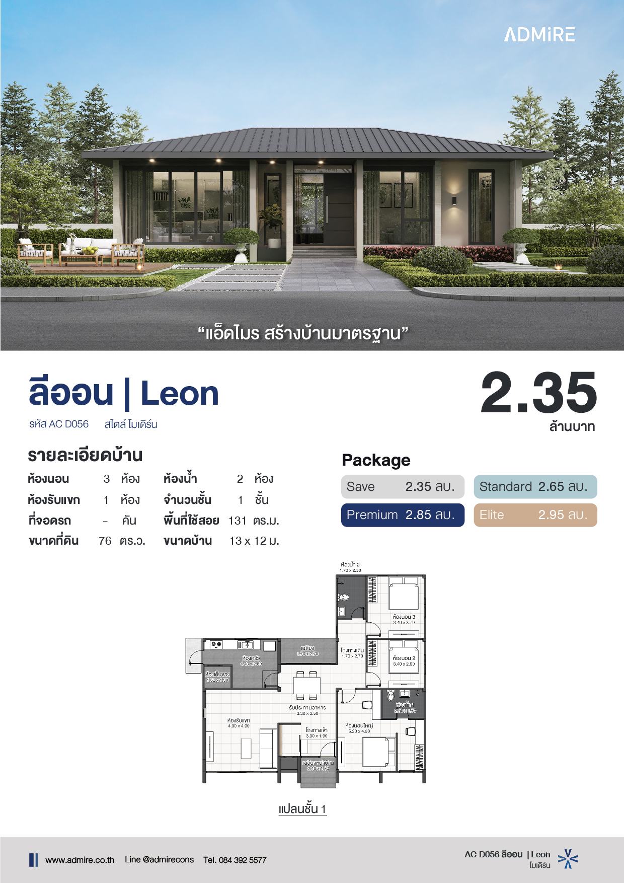 “ลีออน” คือบ้านสไตล์ Modern Contemporary ที่ผสานความเรียบหรูเข้ากับความทันสมัย เน้นเส้นสายตรงชัดเจน หลังคาเมทัลชีทสีเข้มตัดกับผนังโทนอบอุ่น สื่อถึงความมั่นคง ทันสมัย และความภูมิฐาน เหมาะสำหรับครอบครัวที่ต้องการบ้านที่ดูดีทันตา แต่ยังคงฟังก์ชันใช้งานที่ครบถ้วน