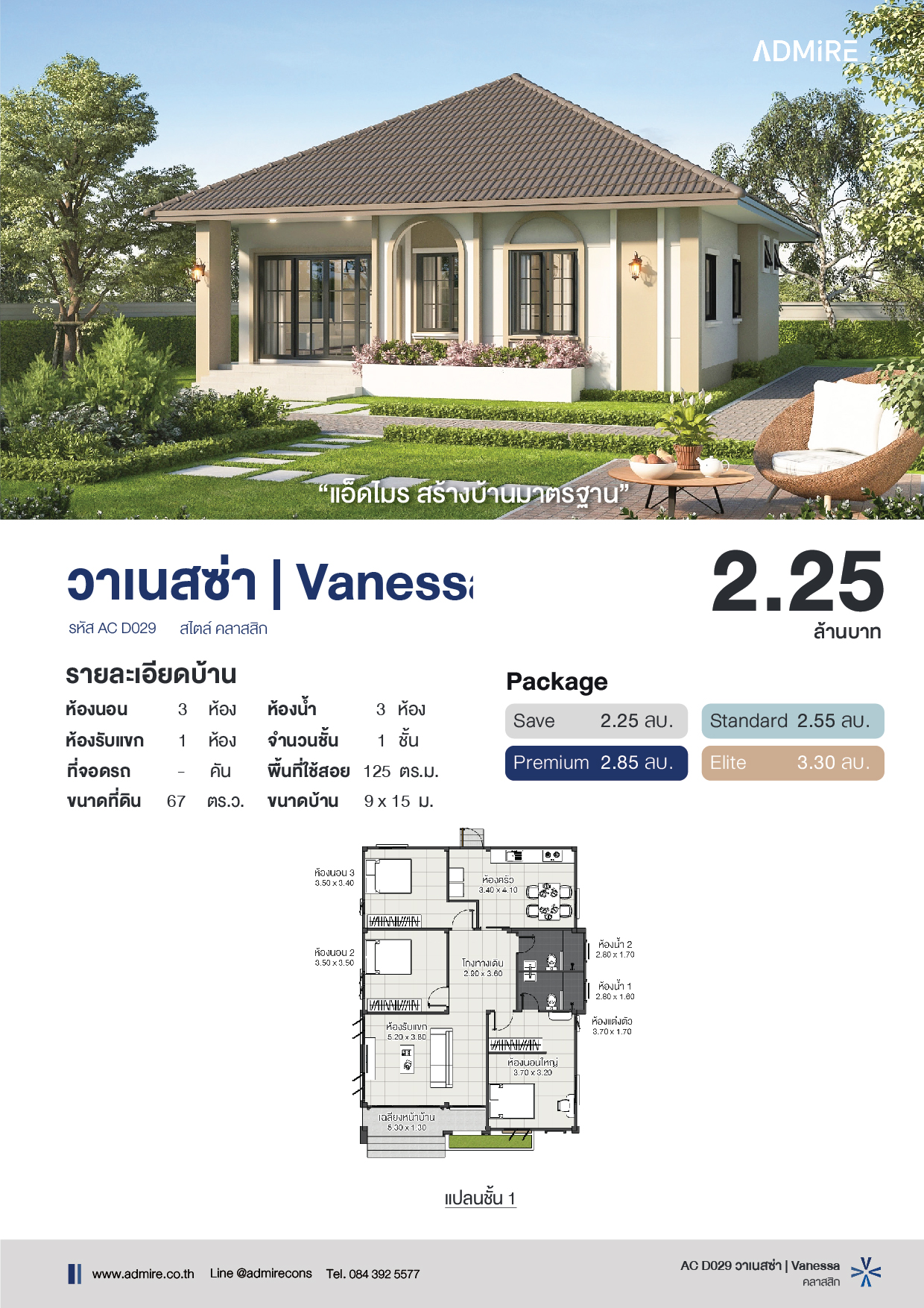 บ้านชั้นเดียวสไตล์คอนเทมโพรารี่โมเดิร์น โดดเด่นด้วยโทนสีขาว สีเทา และสีน้ำตาลให้ความรู้สึกอบอุ่น สบายตา การออกแบบเน้นความเรียบหรูทันสมัย พร้อมฟังก์ชันครบครัน ทั้งที่จอดรถ พื้นที่นั่งเล่น และพื้นที่ภายในที่โปร่งโล่งรับแสงธรรมชาติได้ดี หลังคาทรงปั้นหยาช่วยเพิ่มมิติให้บ้านดูมีเอกลักษณ์ มาพร้อมกับวัสดุคุณภาพเพื่อบ้านที่ได้มาตรฐาน ทำให้บ้านหลังนี้ไม่เพียงแค่สวย แต่ยังแข็งแรง อยู่สบาย และดูแลง่ายในระยะยาว